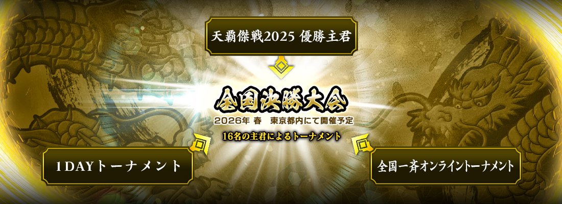 『天覇傑戦2026』全国決勝大会は、16名の主君によるトーナメントにて実施します。
